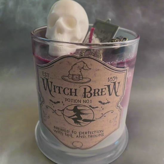 Witches Brew Skeleton Skull Charm Crystal Scented 12 oz Soy Candle